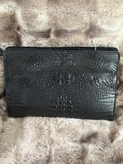 This Clutch is a eye catcher, nice size , real leather and multi colored color cowhide, cloth material on the inside with no snap, one of a kind item.