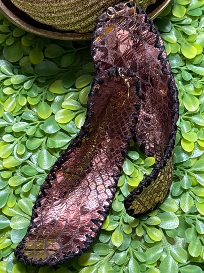 Real leather, special backing on earrings, you can wear them all day. Medium size to earlobes.