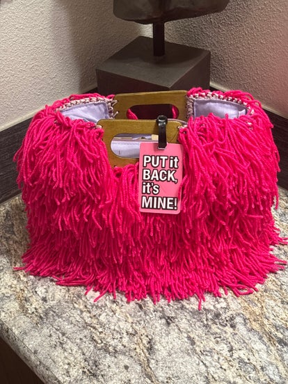 Handmade wood handles Purse, Hot pink,one small pocket attach and one zipper.Meduim size.