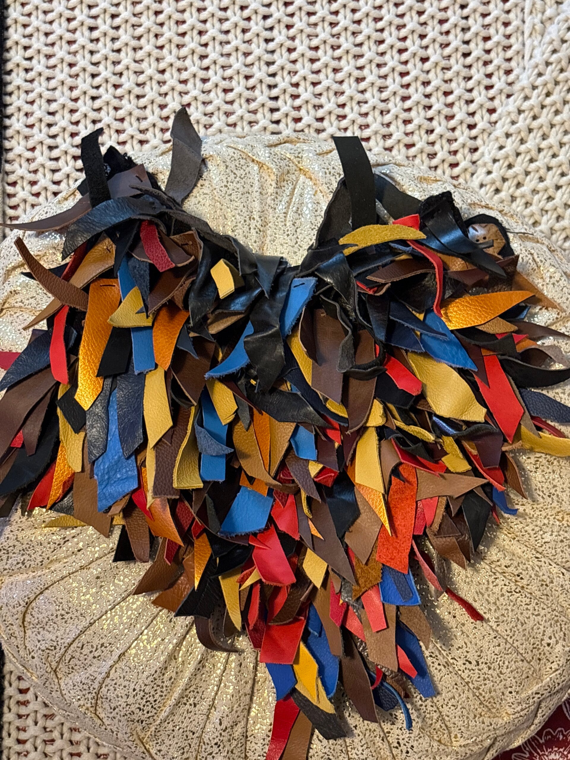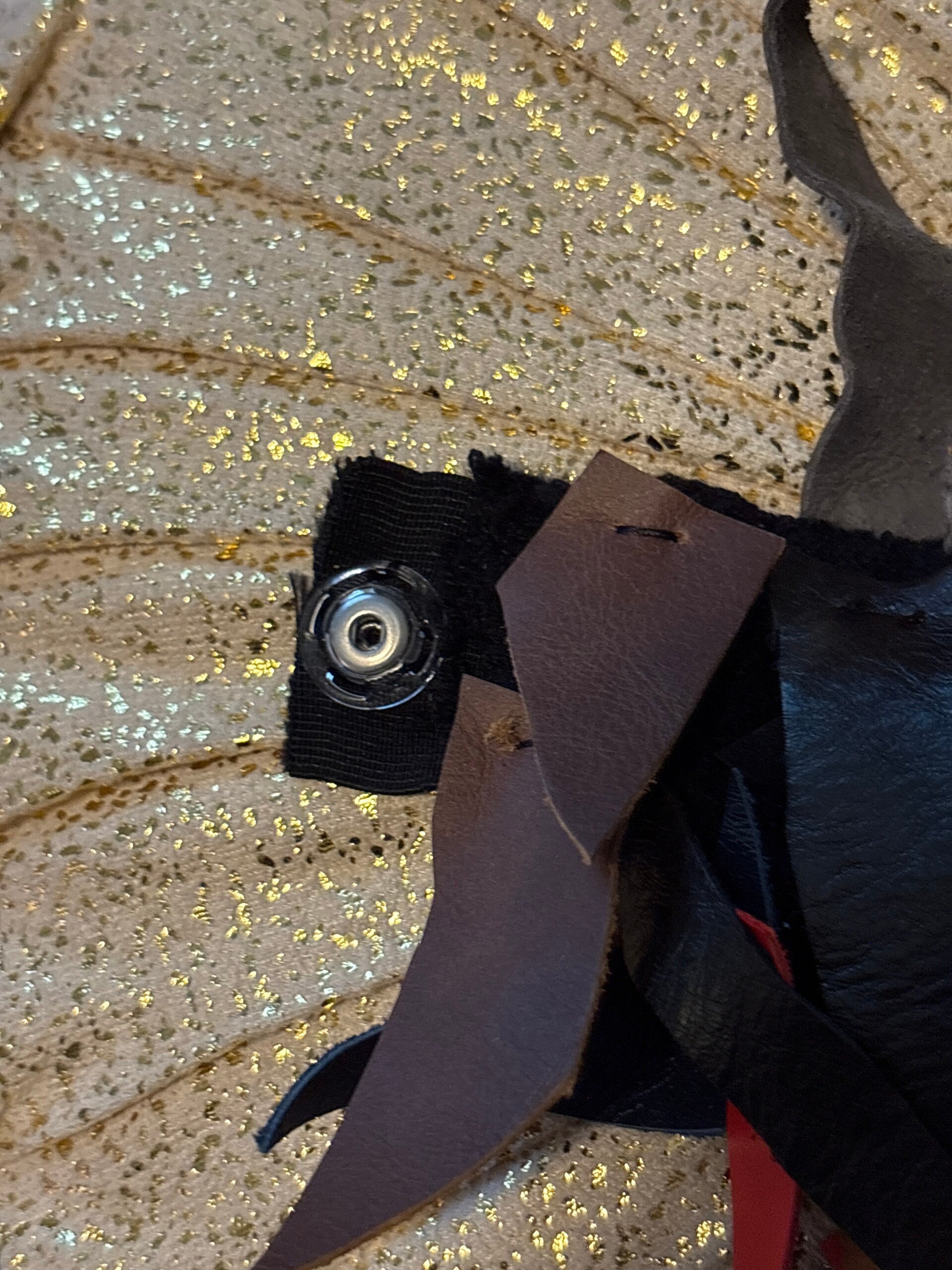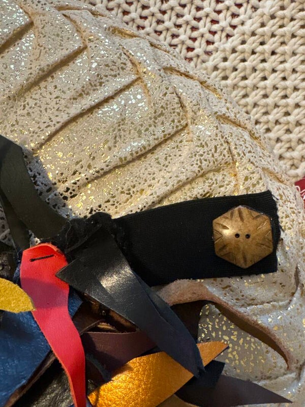 The lady, our confidence is bold, edgy, classic, one of a kind, medium, and weight, real leather, multiple colors with a snap button in the back one size fit off