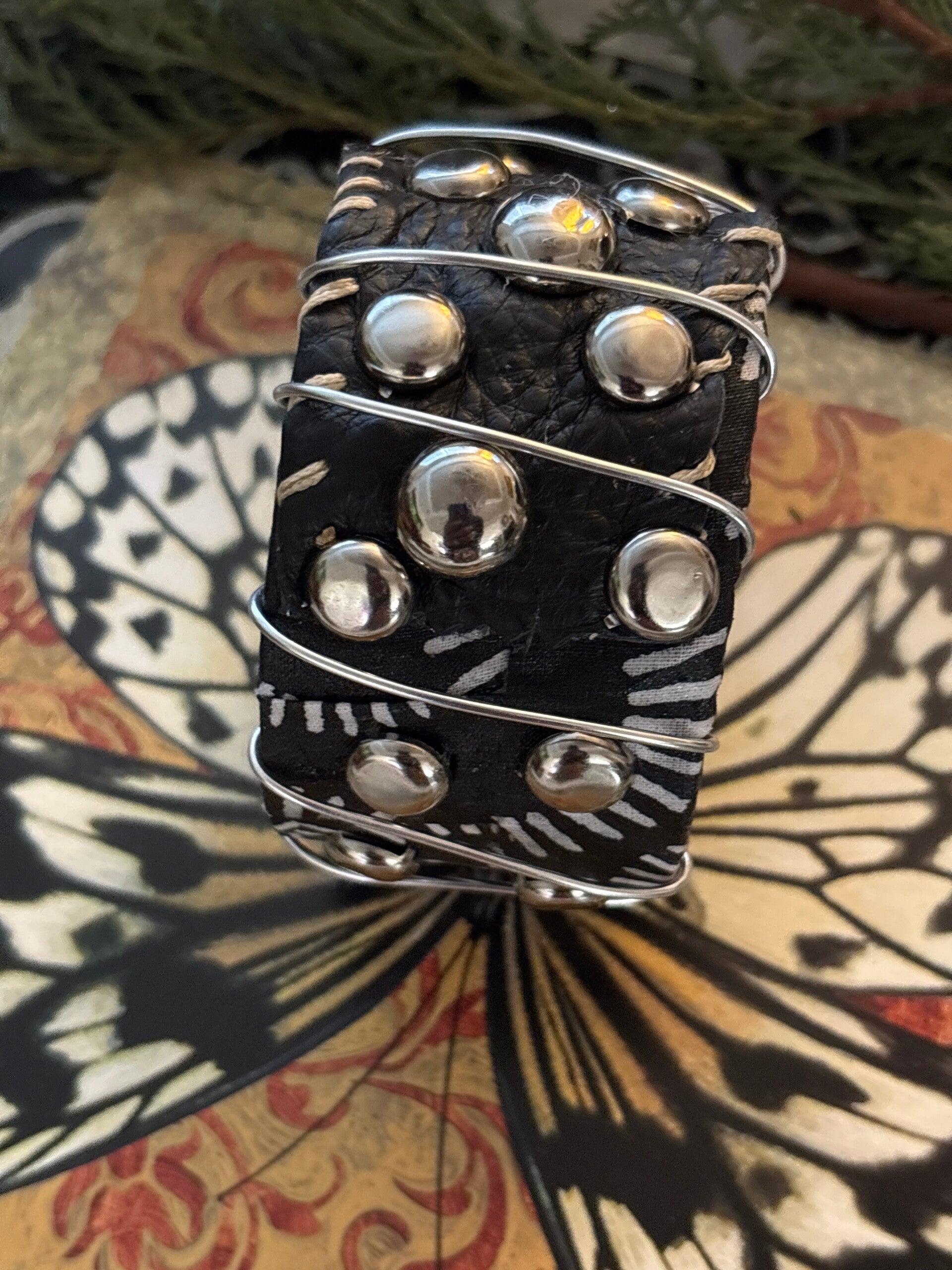 Large enough to make a powerful stub statement, real soft leather, fish hooked attachment, silver stubs added, handmade. what so unique about this particular item it's bendable you can create your own style of earring. They are bendable. This Includes a bracelet set.