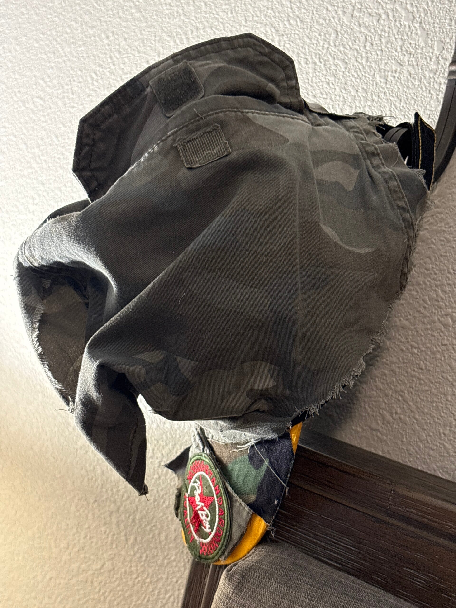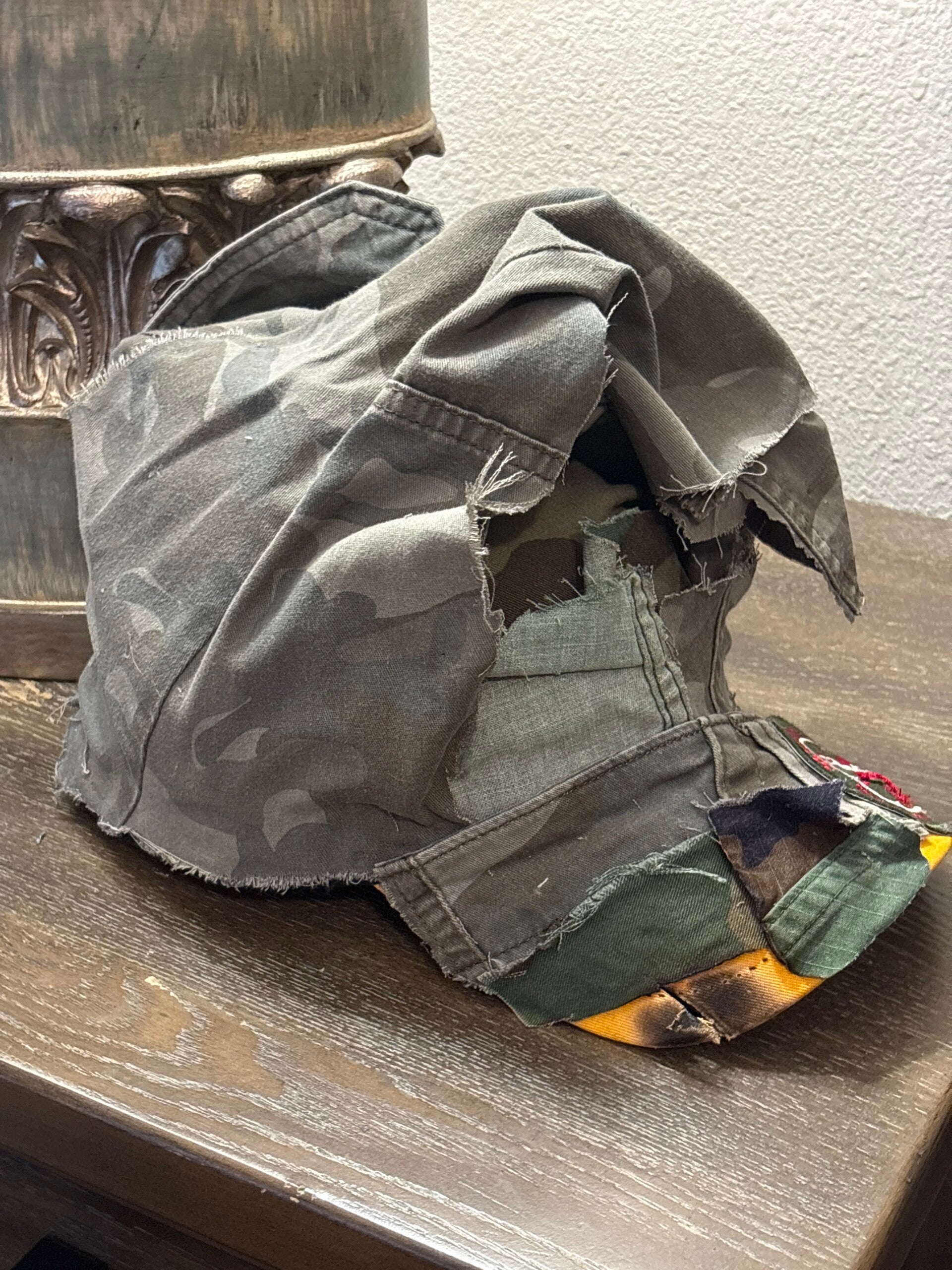One of a kind, unisex, one size fits all, redesigned by Thresds of Envy, velcro is attached in the back where you can make the hat fit perfectly to your hand. It's just a imperfection urban style hat..