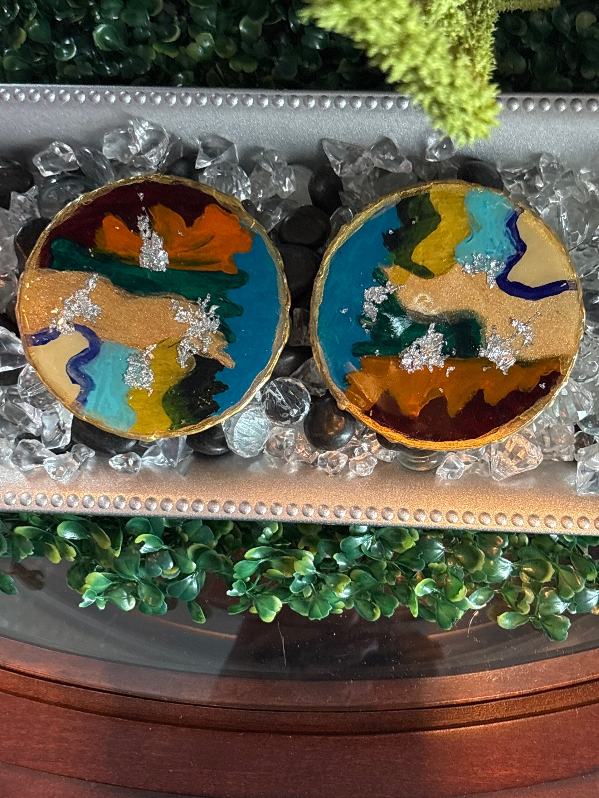 Statement piece, Handcrafted, one of a kind , special posting, Resin and Art creation.These earrings are large to earlobe but lightweight.